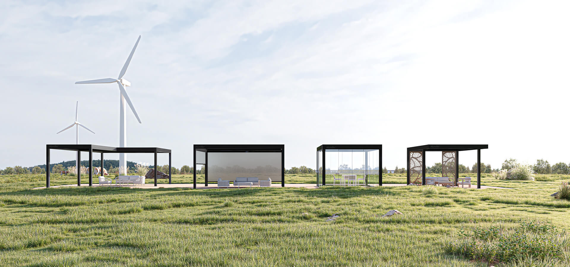 With the right accessories, you can create a unique experience under the pergola and enjoy the outdoors all year round. Such as sliding glass door, zipped blind tec.